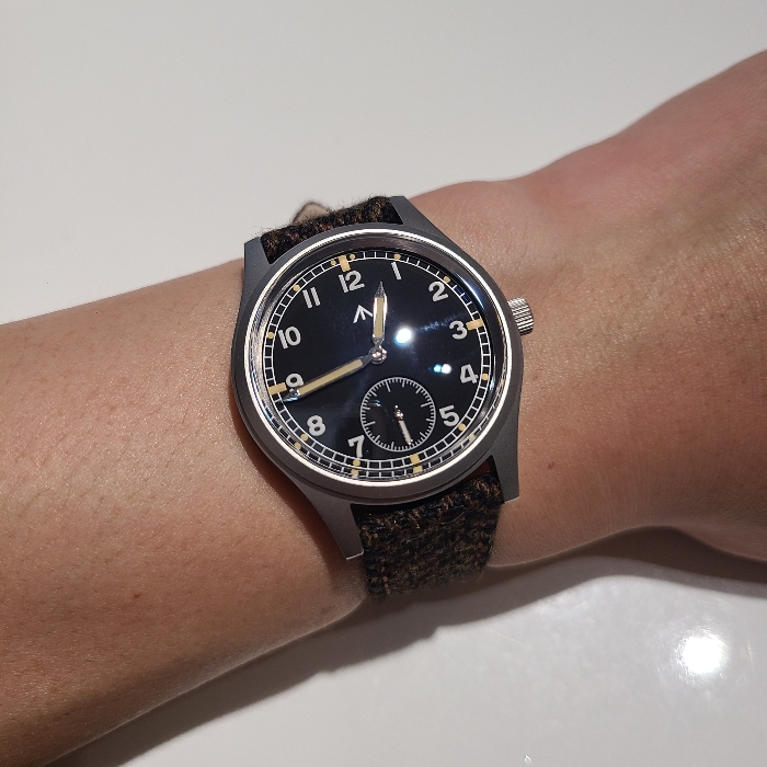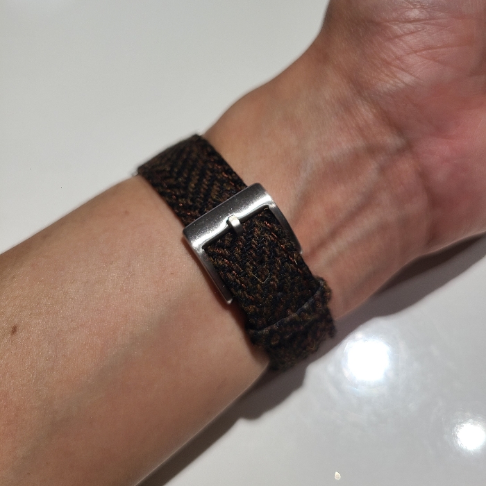 이 밀리타도 더티더즌은 제가 손목시계에 관심을 갖게 된지 얼마 지나지 않아 구입하게 된 손목시계라 나름 오랜기간 보유하는 중이고, 그런 만큼 여러가지 시계줄들을 바꿔가며 사용해왔습니다. 언제나 느끼는건 이 더티더즌이 검은색 다이얼에 무난한 디자인을 가지고 있으니 어지간한 시계줄은 다 잘 어울린다는 점입니다. 이번엔 가을느낌이 나게 트위드 패턴의 시계줄을 구입해서 매치해봤습니다.