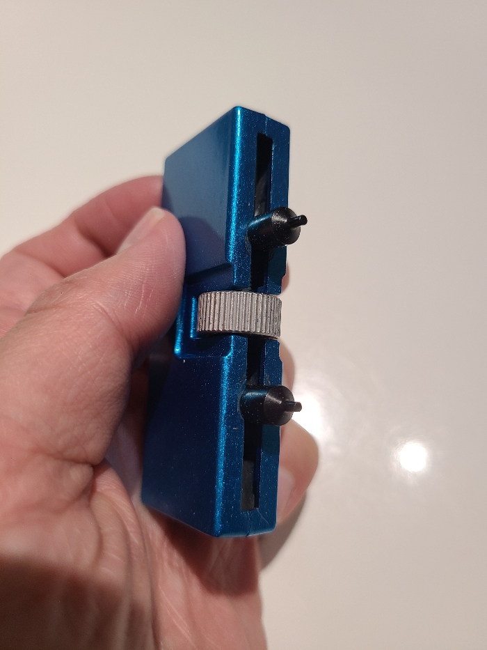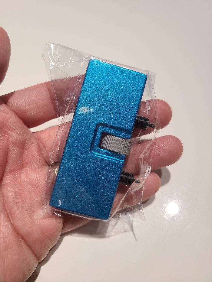 백케이스를 열기 위해선 도구가 필요합니다. 홈에 맞게 조절해서 나사를 풀 수 있는 도구인데, 역시나 알리에서 구입했습니다. 시계 수리 도구를 세트로 파는 곳이 많으니 하나쯤 구비해두시면 이렇게 요긴하게 사용할 수 있습니다.