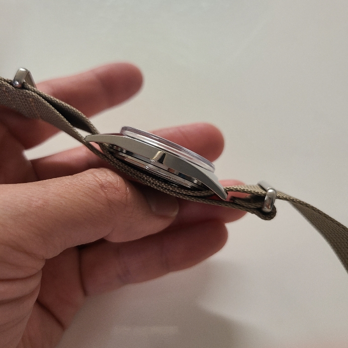 투패스 나토스트랩을 사용해서 손목에서 살짝 들뜨는데, 워낙 얇아서 크게 거슬리는 부분은 아닌 것 같습니다.