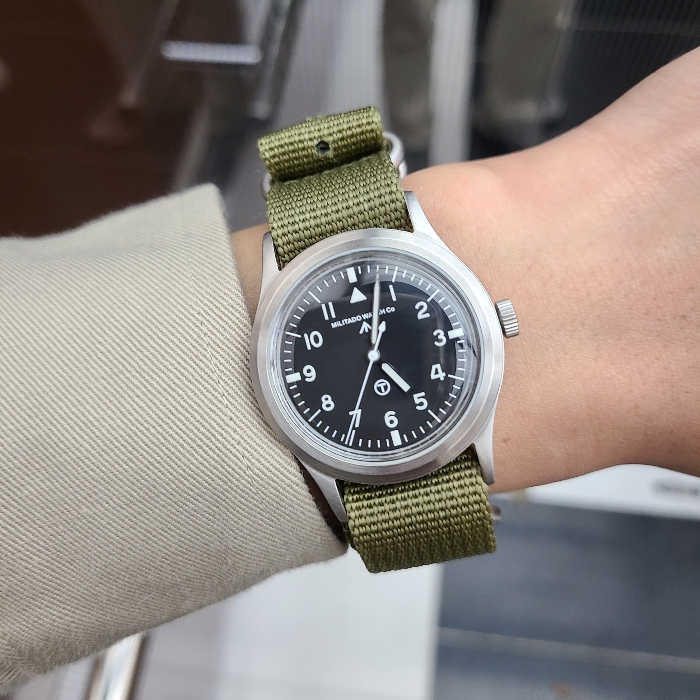 밀리타도 ML14는 원본의 Mark 11처럼 크림색으로 변해버린 야광도료(파티나 현상)의 색을 재현한 버전도 있는데, 제가 빌리게 된 손목시계는 야광도료가 흰색이라 깔끔한 모습을 보여주는 버전입니다.