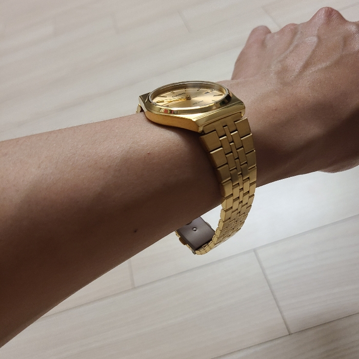 최종적으로 12시 방향으로는 2링크, 6시 방향으로는 5링크를 빼냈습니다. 이렇게 빼내도 제 손목에서는 버클이 살짝 12시방향으로 올라가있는 느낌이 듭니다만, 그럭저럭 사용할만한 수준은 됩니다. 혹시 저보다 손목이 가느다란 분이라면 구입 전 미리 6시방향 고정링크를 1-2개정도 빼달라고 요청하시는게 좋을 것 같습니다.