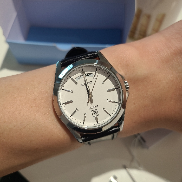 카시오는 전자시계도 많지만 아날로그 시계도 굉장히 종류가 많습니다. 이번에 구입한 녀석은 요일과 날짜창을 모두 가지고 있어서 데이데이트라 불리는, MTP-1370D입니다.