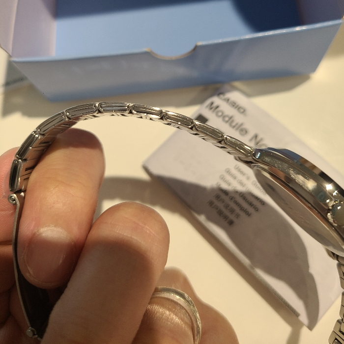 다른 저가형 카시오 브레이슬릿과 마찬가지로, 버클은 얇은 철판으로 만들어서 가볍습니다.