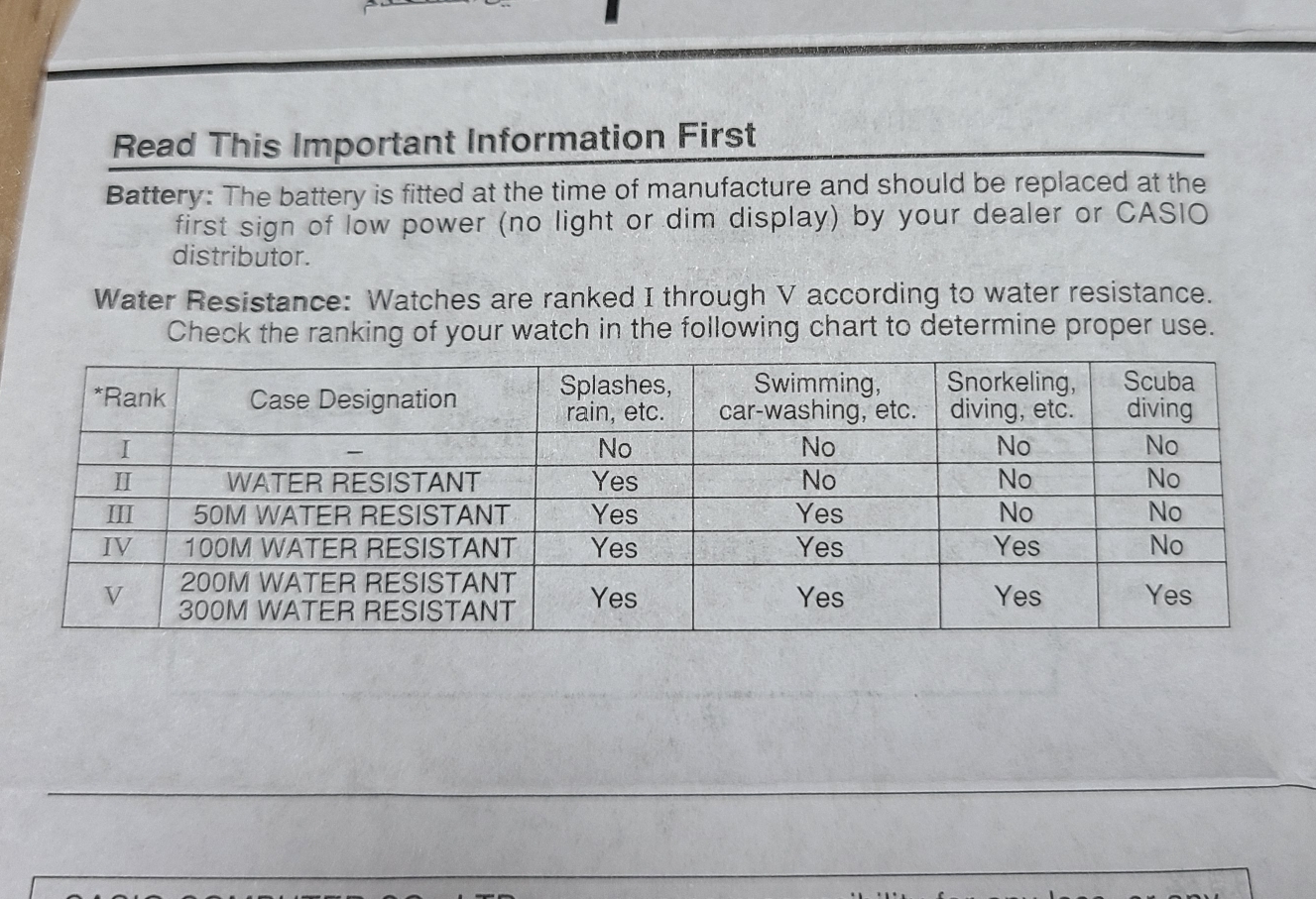 8.2mm의 두께라니, 전자시계라 가능한 것 같습니다. 생활방수에 대해서는 설명서에서 다음과 같이 안내하고 있습니다.