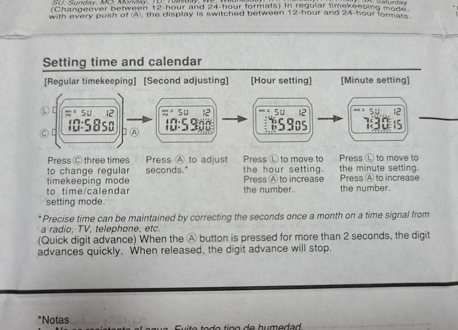 저는 알람이나 스톱워치 기능은 거의 필요하지 않을 것 같아서 시간만 맞추고 설명서는 버렸습니다. 순서대로 따라하면 그리 어렵지는 않습니다.